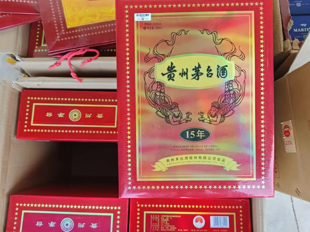 2023年11月,昆明海关所属勐腊海关在对以边民互市方式向海关申报出口的啤酒进行查验时,发现申报货物实为洋酒和白酒,共计261瓶,上述货物使用“NOBLIGE MARTELL及图形”“Hennessy”“MOUTAI及图”等标识。经权利人确认,上述洋酒和白酒均为侵权货物。