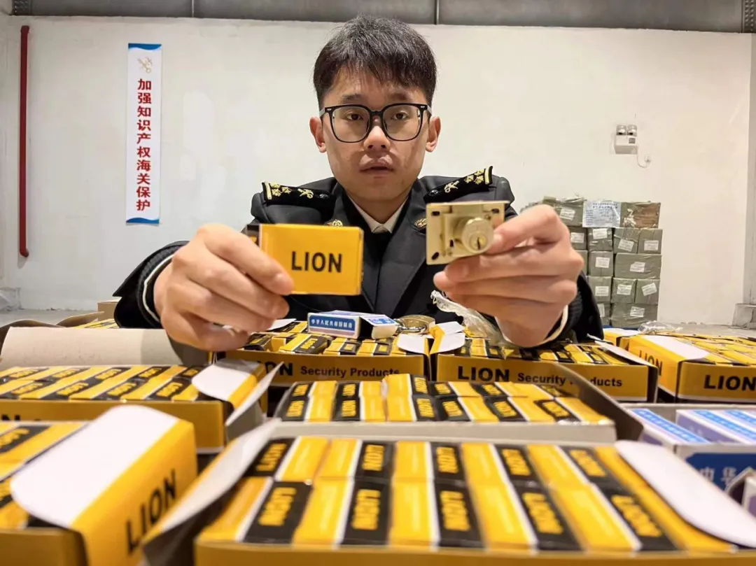 2023年9月,天津海关向杭州海关提出跨关区执法协作需求,就天津莱特进出口有限公司“LION及图形”商标权遭遇侵权有关线索开展联合处置。两关综合研判后,根据侵权商品海外流向、出境口岸等信息实施风险布控。10月,义乌某公司向杭州海关所属金华海关申报出口一批挂锁,另一家义乌公司向杭州海关所属义乌海关申报出口一批塑料水带、抽屉锁、挂锁。上述货物经风险判别,均被海关布控拦截。经查验,金华海关发现使用“LION及图形”标识的抽屉锁15000把,义乌海关发现使用“LION及图形”标识的抽屉锁15000把、挂锁7200把。经权利人确认,上述锁具均为侵权货物。金华、义乌海关分别依法对货物实施扣留,立案调查后作出没收侵权货物并处罚款的行政处罚决定。