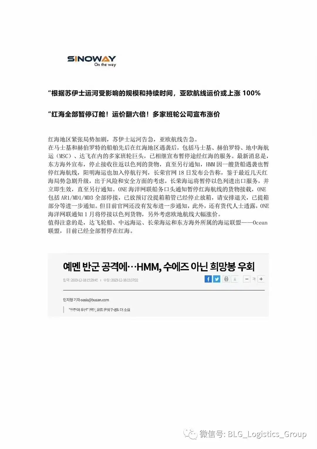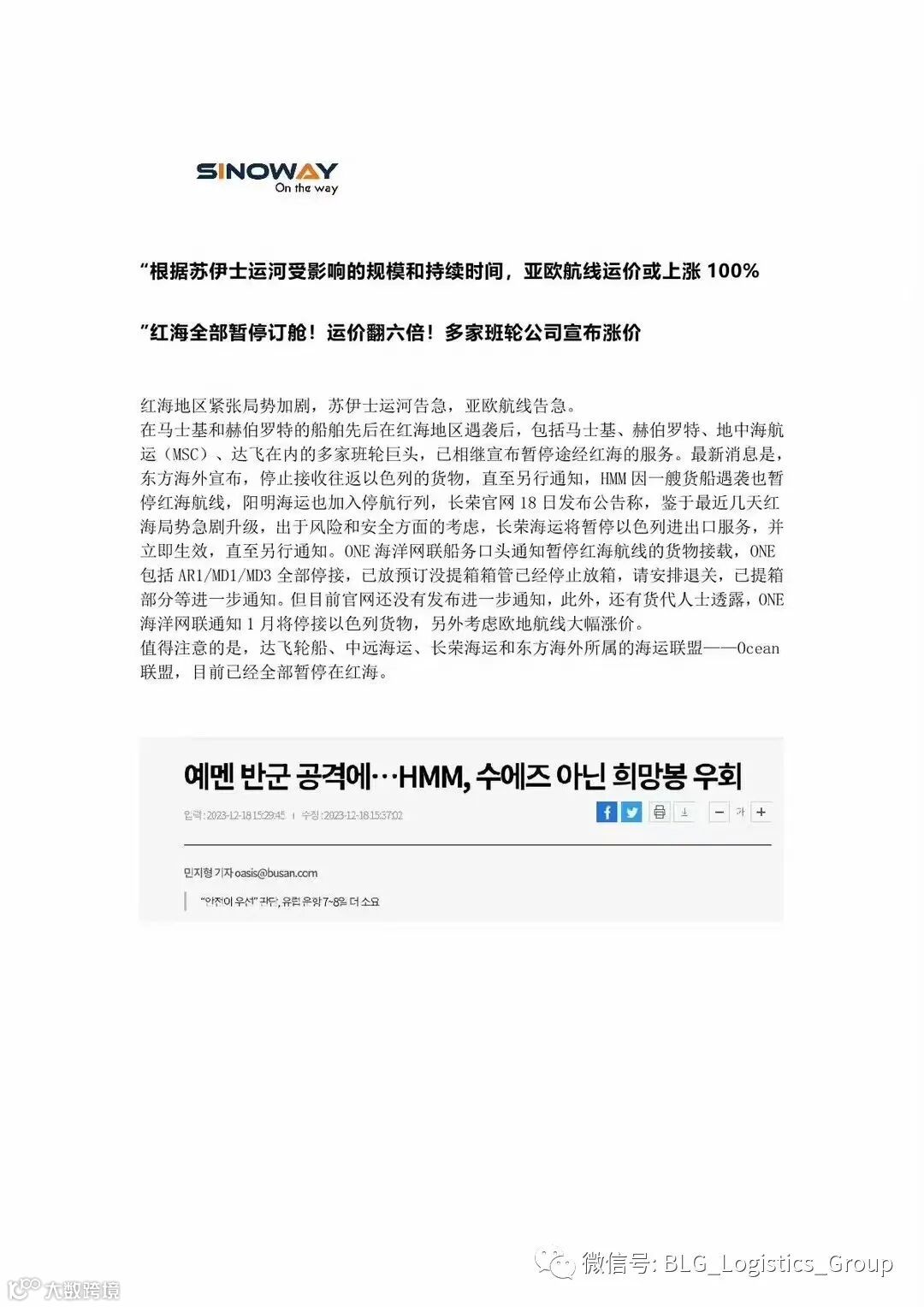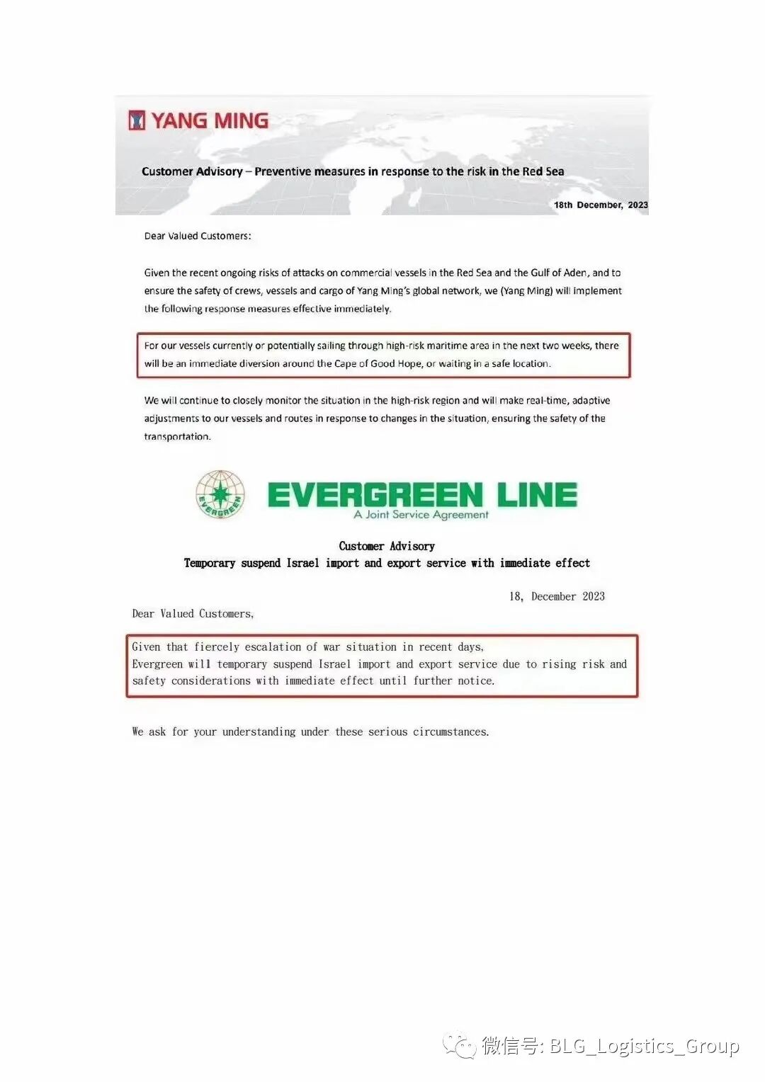 随着红海局势不断恶化,船公司纷纷宣布红海航线停航或暂停订舱拒接货物。继四大航运巨头MSC、马士基、达飞和赫伯罗特宣布暂停红海航线后,HMM因一艘货船遇袭也暂停红海航线,阳明海运也加入停航行列。此外,中远海运、长荣、ONE和东方海外OOCL等暂停红海航线订舱。