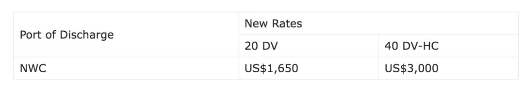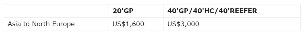 - 远东至阿什杜德,2300美元/TEU、3260美元/FEU