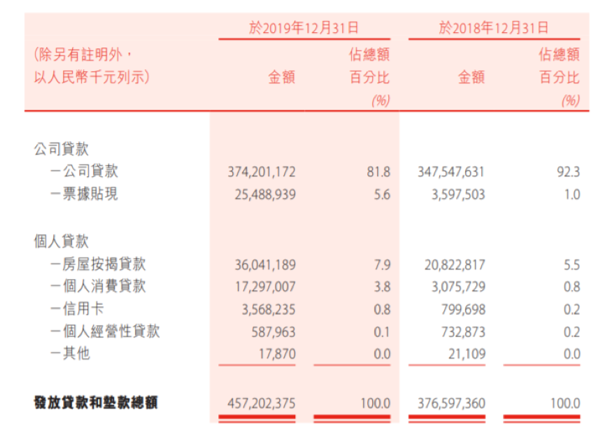 从资产负债两端的详细数据看,在资产端,盛京银行深化与“双优双主”客户合作,持续加大信贷资产投放力度,截至2019年末,各项贷款余额为4572.02亿元,占比为44.8%,同比增加6.6个百分点。其中,公司贷款(包括票据贴现)3996.9亿元,较上年末增加485.45亿元,增幅13.8%,占贷款总额的比重为87.4%。