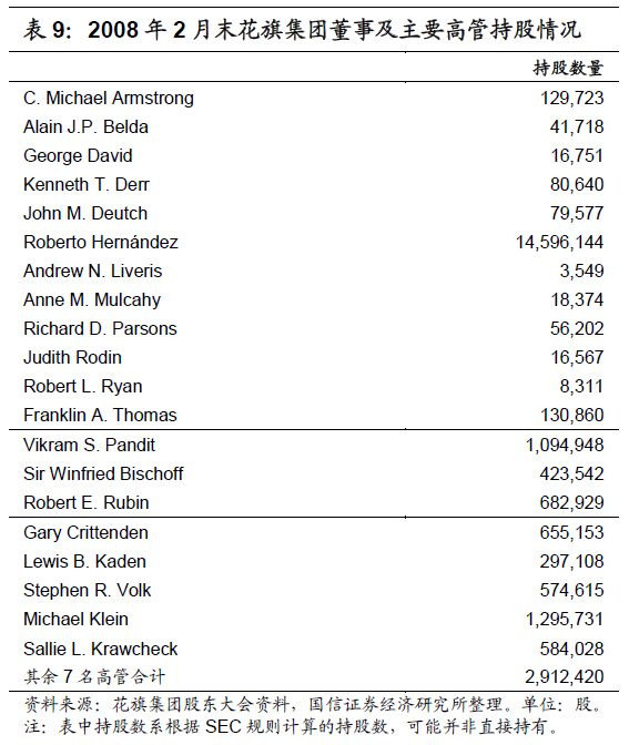 与富国银行类似,花旗集团要求董事和管理层在任期间持有所获股票的75%。