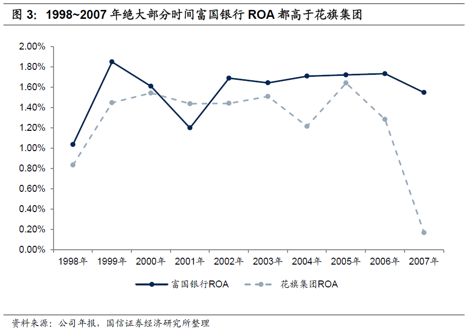 不过剔除杠杆因素,单从ROA来看,花旗集团的盈利能力则始终不如富国银行。
