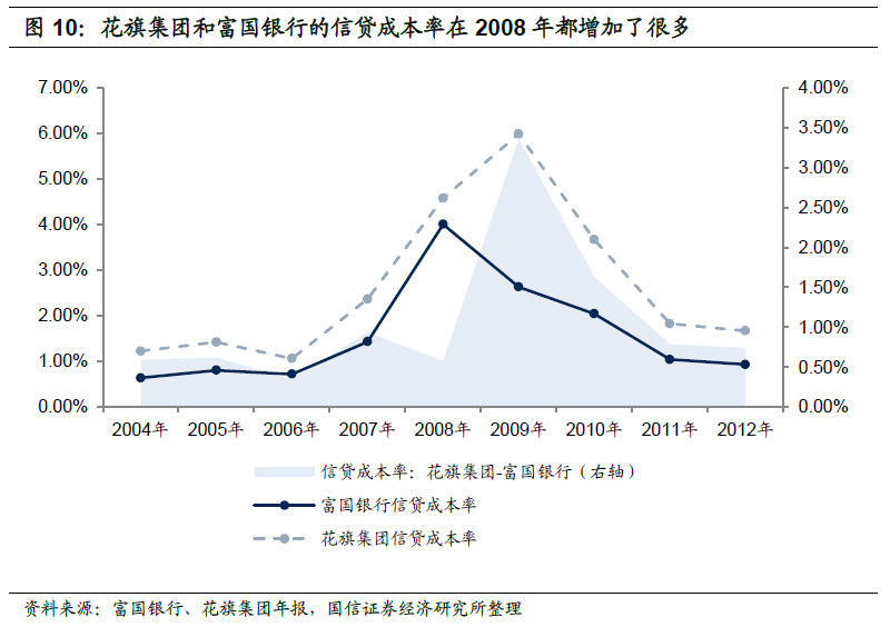 花旗集团在2008年亏损了277亿美元,而大量从事交易类业务,尤其是衍生品业务则是罪魁祸首。花旗集团和富国银行的信贷成本率在2008年都增加了很多,但花旗集团的自营衍生品交易业务给公司带来了226亿美元的额外损失。