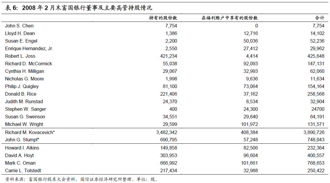 富国银行与花旗集团股权极度分散,因此我们不关注其股东,而主要关注董事会和管理层情况及其考核激励机制。我们分析后发现: