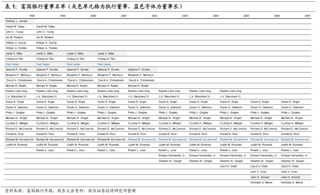 富国银行的董事会成员比较稳定,有不少董事任职时间超过十年。其董事会成员绝大多数都是独立董事。
