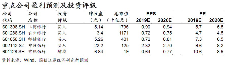 我们维持行业“超配”评级。个股方面继续推荐工商银行、农业银行、邮储银行+宁波银行、常熟银行的“哑铃组合”。