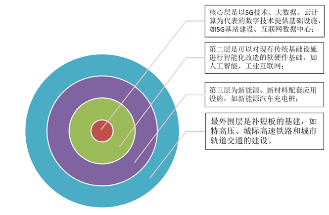 从政策背景来看,新基建实施将更偏重于“稳”,实施过程将更加精耕细作,粗放式大干快上再无可能。具体来说,新基建就是为硬科技等新技术提供完善的基础设施,助力我国在未来科技领域内取得领先,加快推进国家规划已明确的重大工程和基础设施建设,重点加大公共卫生服务、应急物资保障领域投入;加强脱贫攻坚、交通能源、重大水利、农业农村、生态环保、市政设施、社会民生、城镇老旧小区改造等补短板领域建设;加快5G网络、数据中心等新型基础设施建设进度,更加注重调动民间投资积极性。