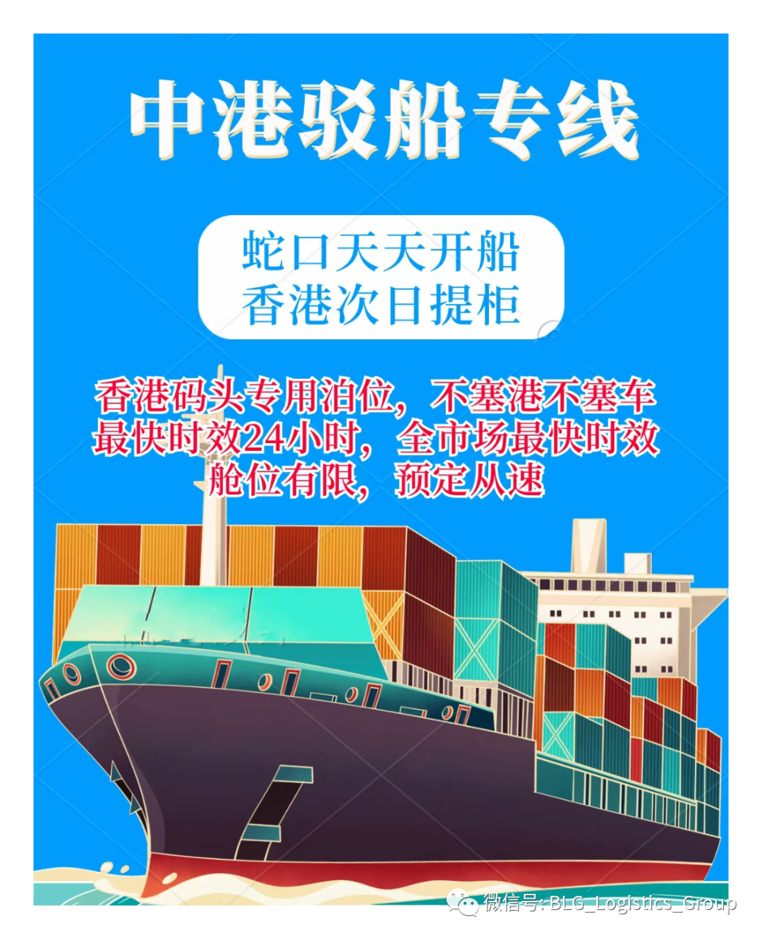 BLG兄弟集团整柜深港驳船,包船模式开启,码头股东实控,自有香港拖车,船期2/4/6,船离码头24小时配送到门,已内测一周,时效稳定,安全可靠,现正式上线,运价5字头,大批量可申请特殊折扣,需要的企业可联络我司客服专员。