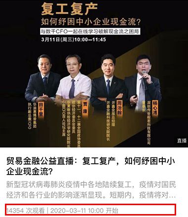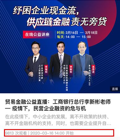 从3月1日首期公益直播至今,共计邀请10余位资深行业嘉宾,分别进了行不同主题的分享。有经济学家、研究院院长、也有银行领导、各头部企业的CEO、CFO以及业内专家等,分别在财税、财资、供应链金融、金融科技、区块链等领域,剖析行业、深挖场景,从理论内容到实操内容,从干货分享到案例详解。