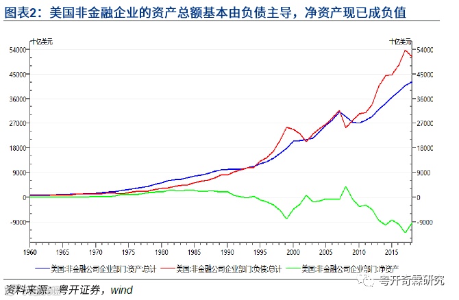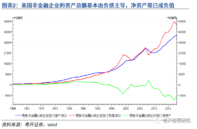 这说明,第一, 美国非金融企业部门的繁荣完全是由债务托起来的;第二,美国大量的企业采用了举债回购的手段来推升自身的股价,如此才会造成负债大幅增长的同时,净资产出现大幅的减记。