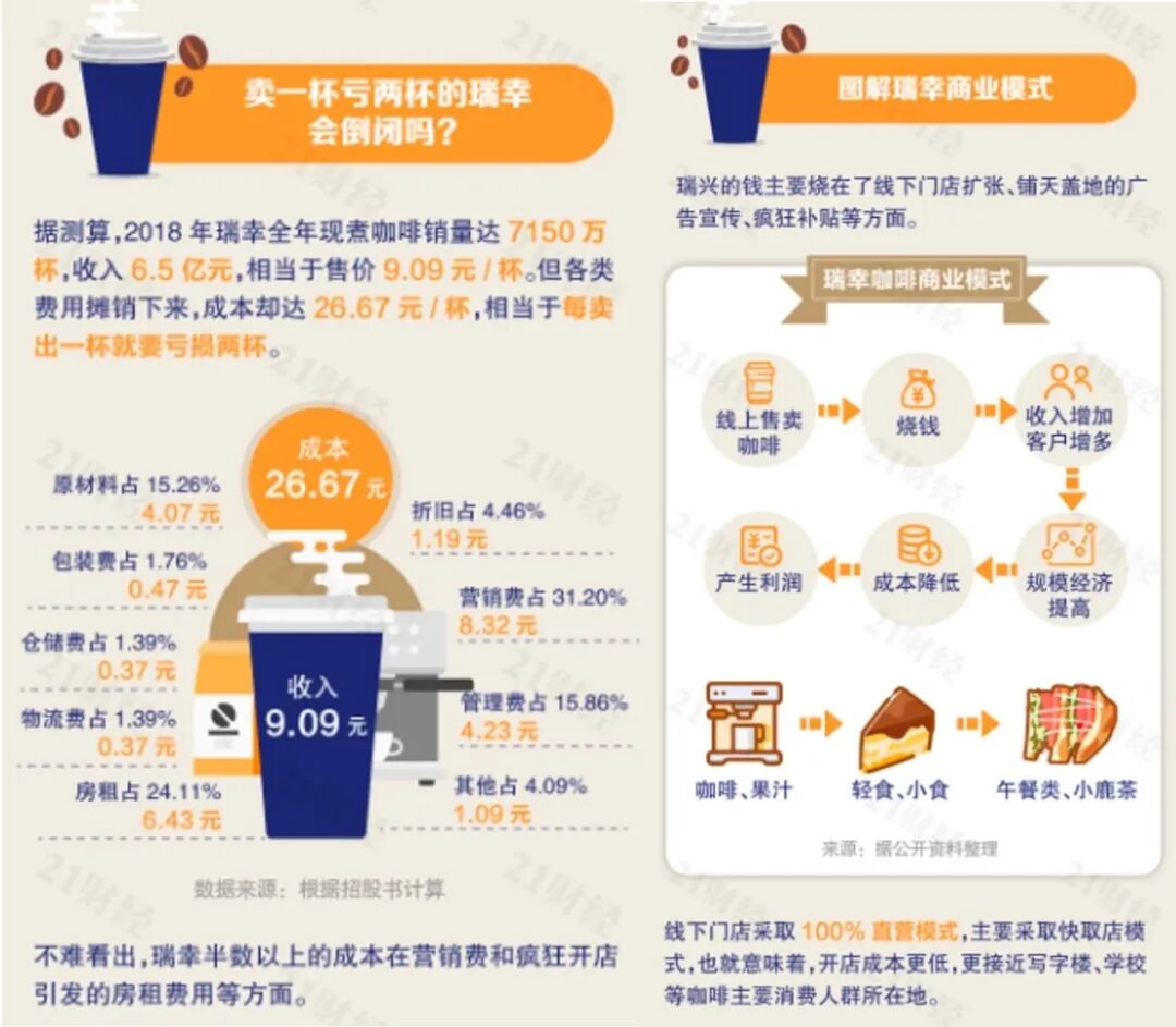 从10亿资本入局,明星代言,到密集开店,瑞幸 高开高打进入现磨咖啡市场,成为“Z世代”喜欢的新物种。以首单免费获取第一批用户,随后用裂变拉新客、留旧客,实现病毒式增长。同时,采用类似盒马的“门店+外送”全场景模式,在2公里范围内获取大量的全场景流量,场景成本基本为零,而传统咖啡店仅场租和装修就要占到成本 30% 以上。
