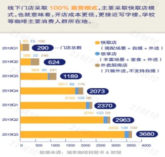 2018年初,瑞幸代言人汤唯、张震广告大片登陆各大楼宇,“luckin蓝”、“小蓝杯”优雅的鹿头掀起风潮。截至2018年底,瑞幸线下门店突破2000家,消费人数达1254万人,销售量超8968万杯,2018年营收1.17亿美元,亏损约2.32亿美元。