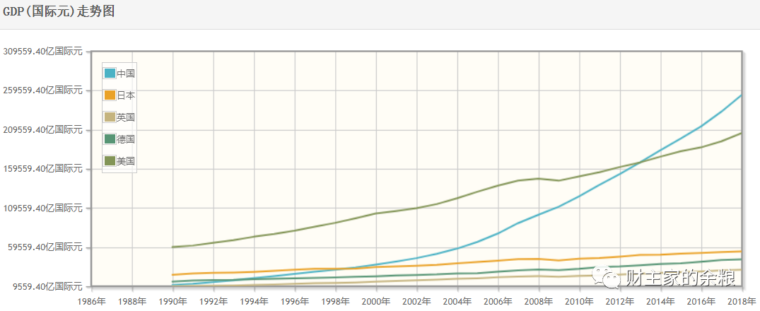 下面的图,就是按照购买力评价法对比1990年迄今中国与西方主要国家的经济规模。