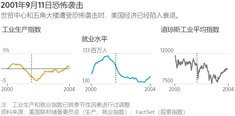 当时,经济学家预测恐怖袭击将使美国经济增速放缓,并进入衰退期。人们不再愿意坐飞机,不再愿意在高楼里工作,或者不愿把办公室设在纽约市。