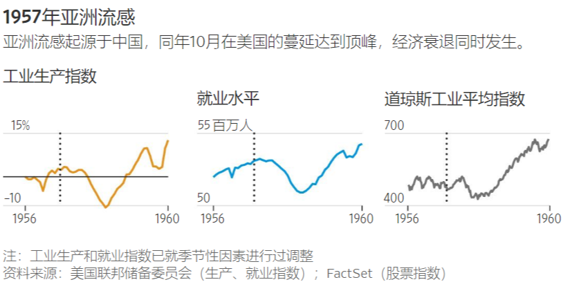 1957年的疫情对经济影响如此之小,原因也许在于人们普遍没有采取社交隔离措施,这与1918年的情形如出一辙。1957年,各州官员和联邦官员都接种了疫苗,这是他们的第一道防线;而在1918年,疫苗尚未问世。