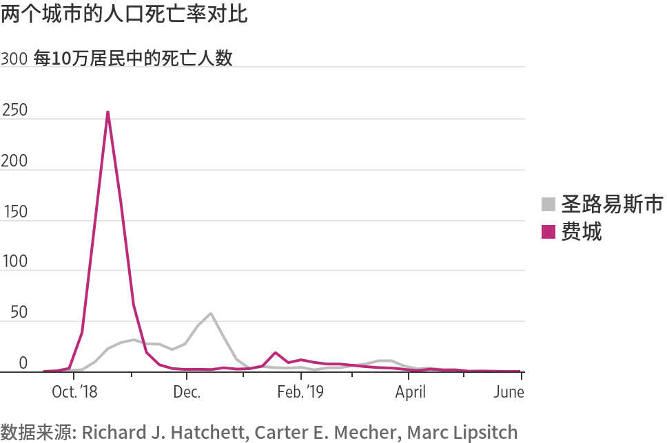 根据理查德·哈切特(Richard J. Hatchett)、卡特·迈切尔(Carter E. Mecher)和马克·利普西奇(Marc Lipsitch)在2007年所做的一项研究,凡持这种态度的城市,其民众的死亡率高于其它城市。疫情爆发16天后,费城才开始限制社交聚会,甚至还允许一个游行照常进行。圣路易斯市则在疫情爆发两天后就采取了限制措施。在疾病高峰期,费城的日死亡率比圣路易斯市高出五倍甚至更多。