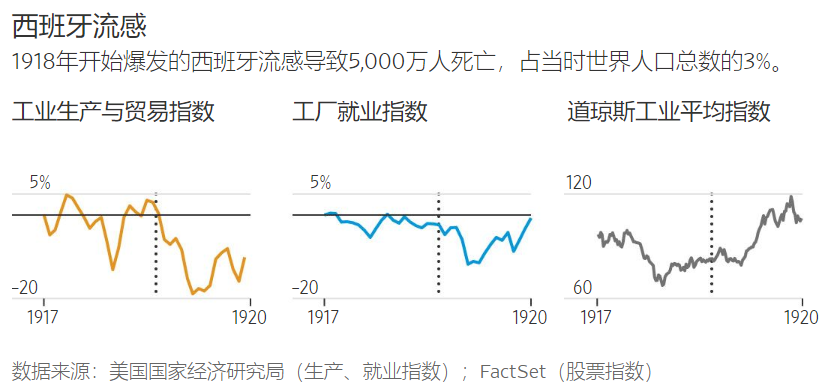 与1918年一样,这场大规模流行病与经济衰退同时发生,但经济衰退的原因是美联储一直在提高利率,以应对不断上升的通货膨胀。詹姆斯和萨金特发现,流感疫情对经济增长产生了“非常小的” 影响,而这主要是由旷工造成的。