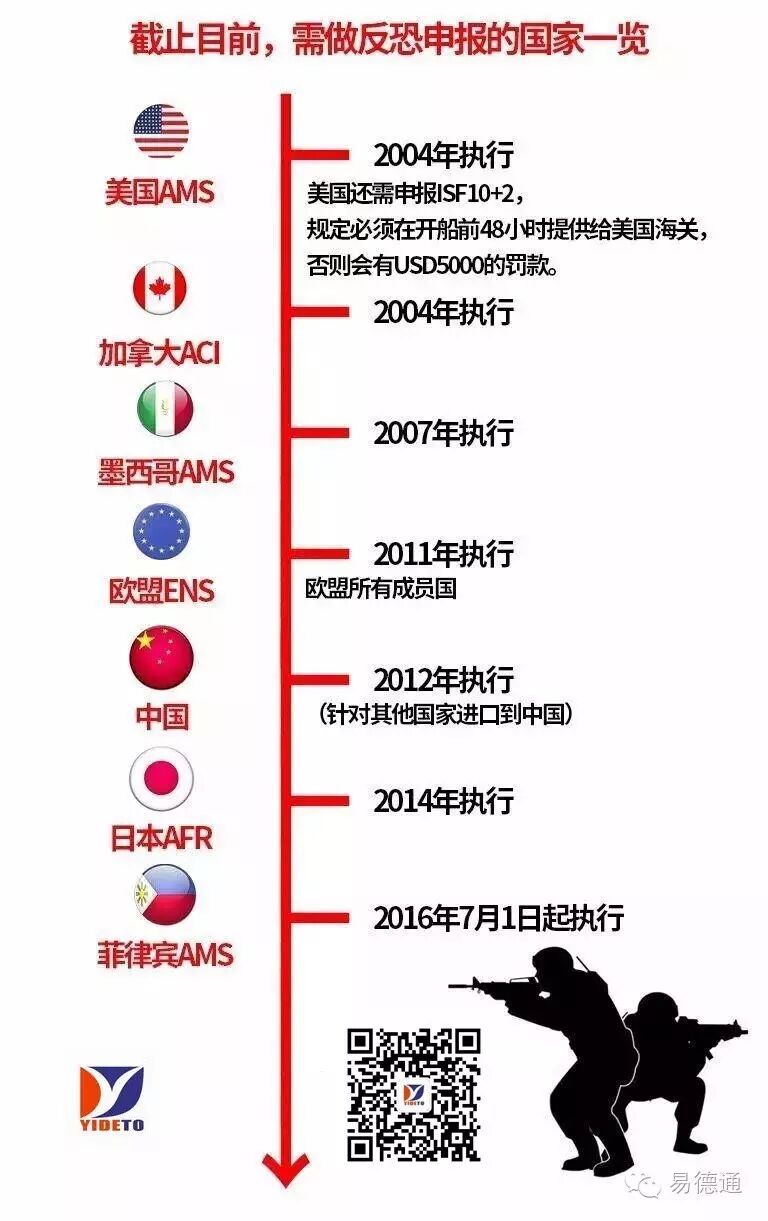 9.11事件以后,因反恐需要,美国海关要求2003年2月1日开始启程运往美国港口的集装箱货物,其承运人必须在国外港口装货前至少24小时以电子方式通过美国设置的“自动舱单系统”,向美国海关提交准确完整的货物申报单。现在所收的AMS,即自动舱单系统录入费。