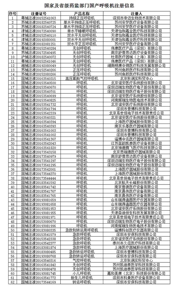 目前公告的具有呼吸机出口资质的企业名单如下: