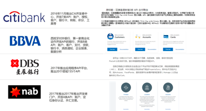 而美国的“开放银行”发展历程和英国又是完全不同的,在《多德-弗兰克法案》的基础奠定下,美国金融市场的参与者众多,除了几家知名大银行外,还有大大小小9000多家金融机构。在如此竞争激励的金融环境中,美国的金融机构都把发展金融科技作为重点。一些有实力的银行,主动开发数据接口,转型成为平台型金融服务公司,积极参与并推动金融科技的发展。整体上看,美国金融机构相对开放包容,更加愿意主动和金融科技公司合作,也更加愿意开放金融数据。