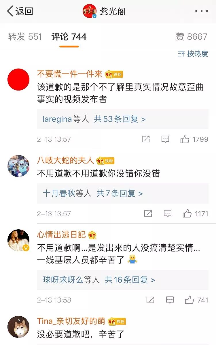以下是选取人民日报、人民网、共青团中央、紫光阁等微博热度最高的评论截图: