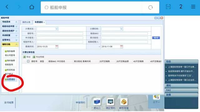 电子收费通知单通过”单一窗口“发送给企业,并提供数据导出功能。企业登录单一窗口后就可以下载查询。
