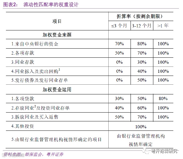 因为按照规定,流动性匹配率=加权资金来源/加权资金运用*100,分子项“加权资金来源”由多项银行负债按照不同的权重加权所得。在权重设计上,存款的权重高于同期限的同业负债,期限越长的负债,权重也越高。
