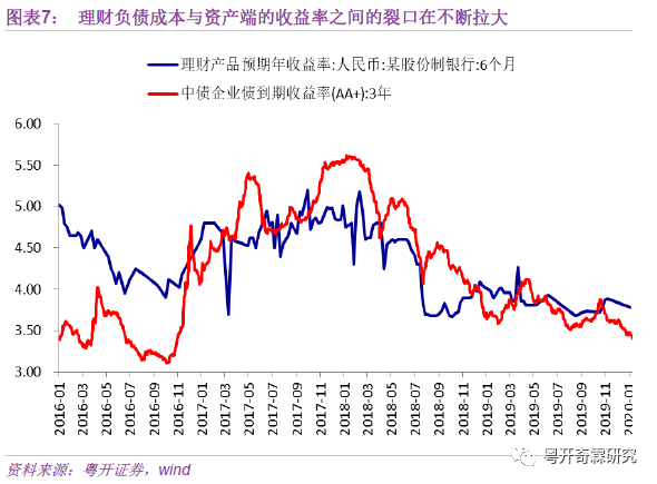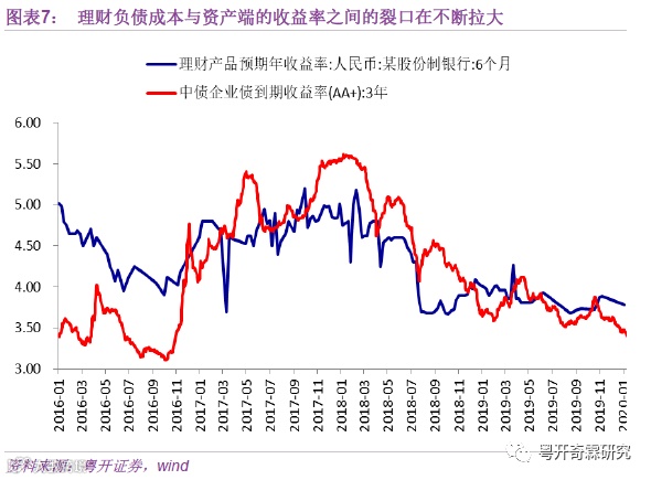 除表内竞争外,与银行表外类存款的理财产品竞争,也让银行不得不提高存款利率来吸收存款。资管新规及其一系列的配套文件出台,虽然明面上是在呼吁打破刚兑,不允许银行发行新的预期收益型理财产品,但实际上,在居民低风险偏好的本质没有发生改变前,理财的刚兑依然真实存在。