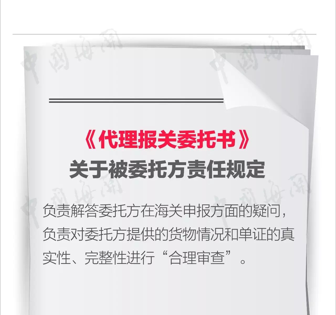 《中华人民共和国海关法》明确规定代理报关企业应履行“合理审查”义务,而《代理报关委托书》不仅对“合理审查”的内容进行了更详细的规定,还规定了赔偿原则。
