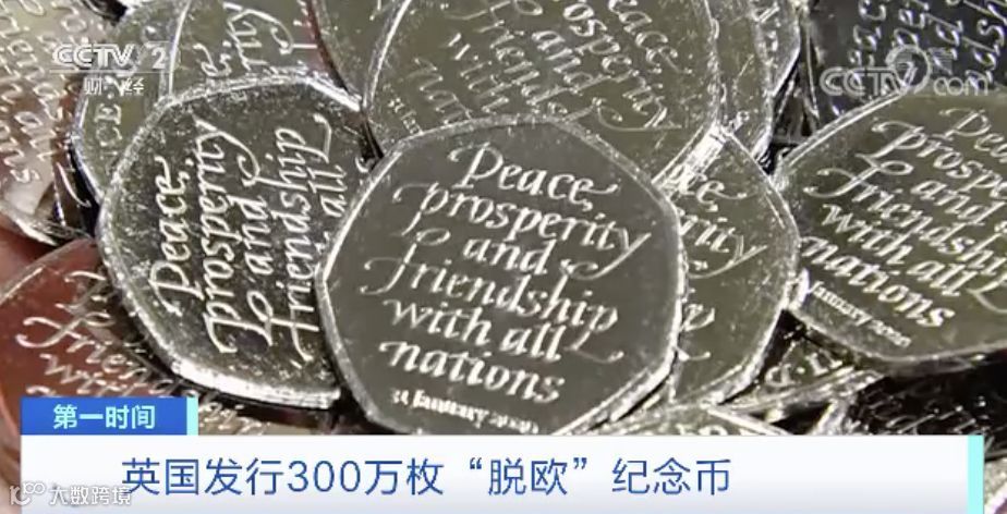 当地时间1月31日,英国发行了一款面值50便士(约合4.5元人民币)的“脱欧”纪念币。纪念币上刻有“共享和平、繁荣和友谊”字样,以及日期“2020年1月31日”。