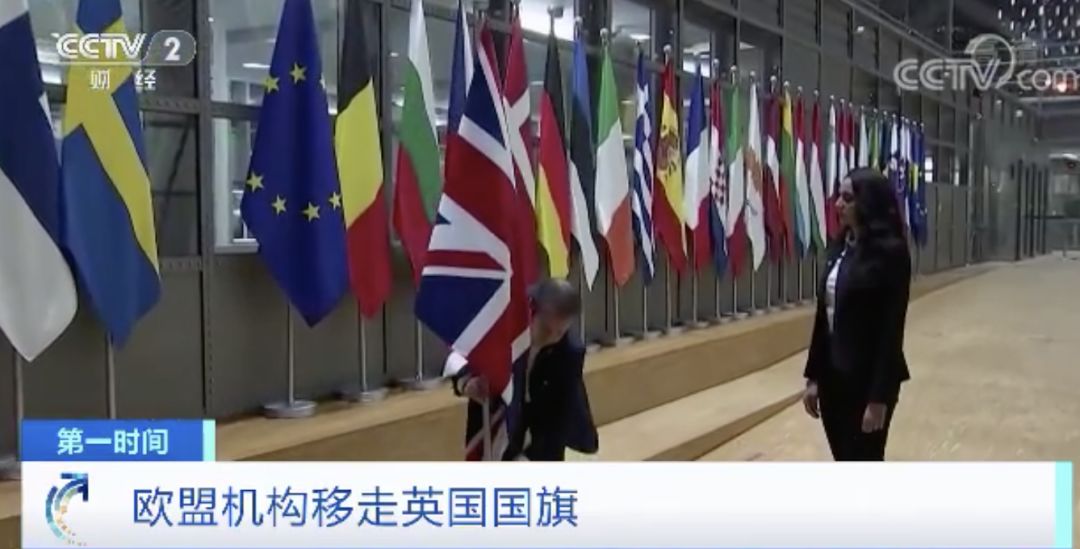 而在当地时间1月31日下午,英国已经把驻欧盟布鲁塞尔代表处外的欧盟旗帜拆下,旗杆上只留下了英国国旗。