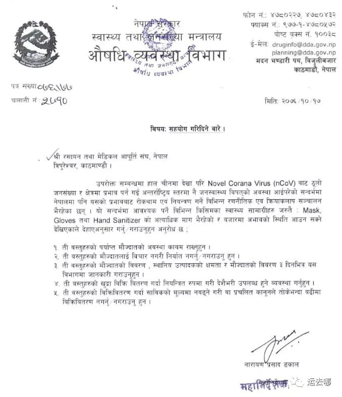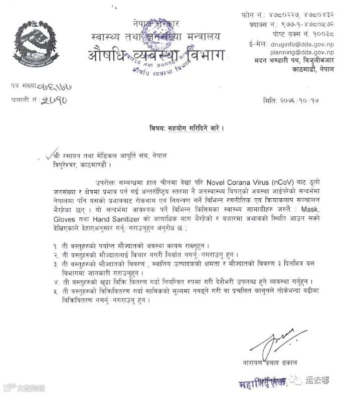2月1日,尼泊尔卫生与人口部发布公告, 宣布对口罩等个人防护物资进行核查,并在无法保证库存的情况下限制其出口。