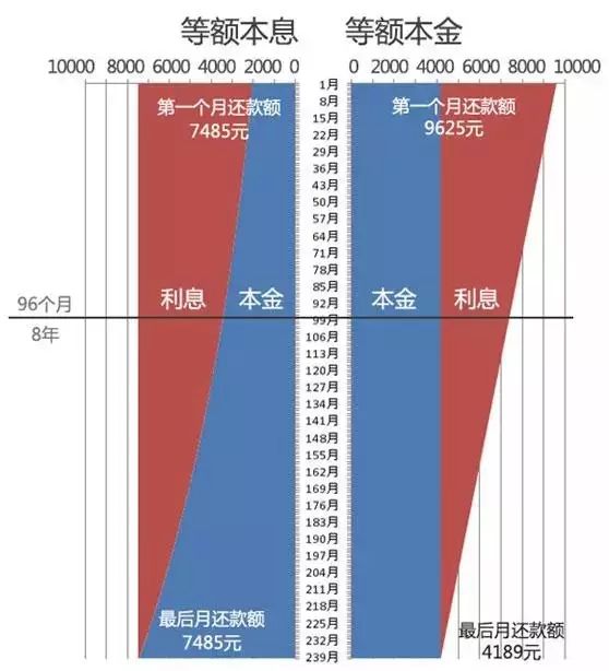 很多朋友看到30年,等额本息的总利息是421.5万,等额本金332.1万,尼玛,坑爹啊,银行收了我们这么多利息。