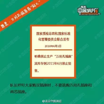 插座是每家每户都在用的日常用品,但你知道吗,万能插座由于设计时需要同时满足三极插头和两极插头,插孔较大,使用时插孔弹簧片与插头接触面积较小,在使用大功率电器时发热严重,容易引起火灾。自2010年6月1日起,国家明确禁止生产万能插座。2011年6月起,禁止销售万能插座。对此,很多人竟然还不知情!