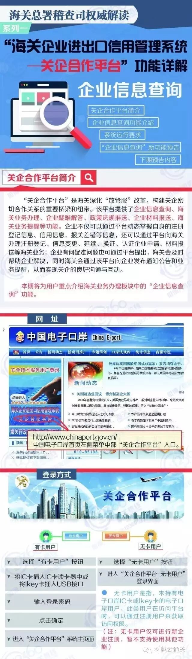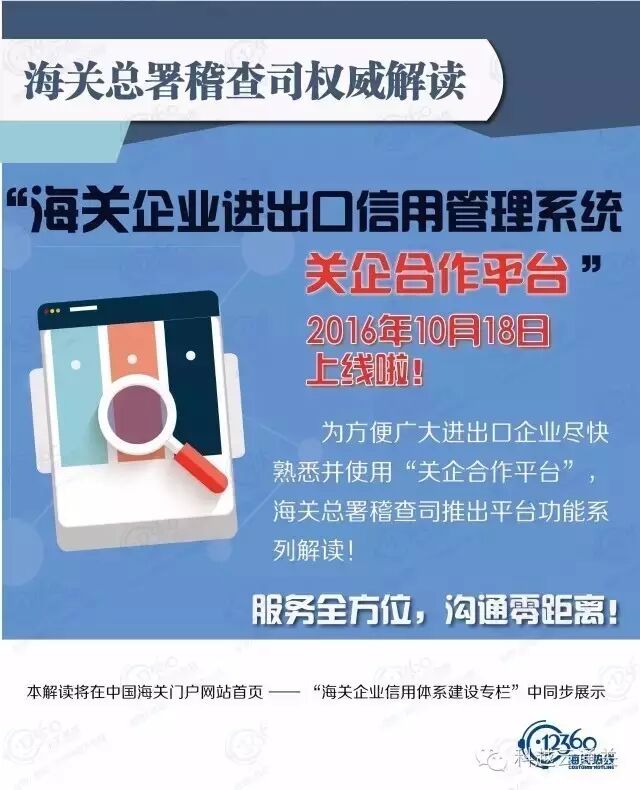 海关企业进出口信用管理系统—关企合作平台将在2016年10月18日上线!为方便广大进出口企业尽快熟悉并使用“关企合作平台”,海关总署稽查司推出平台功能系列解读!今天让我们先来看看该平台都有哪些功能吧~请看本期:“海关企业进出口信用管理系统—关企合作平台”功能详解!