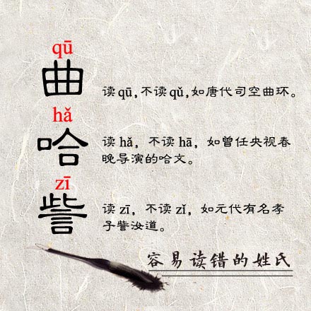 中国人的姓氏源远流长、数量众多,有的读音和平常读法不一样。那、哈、曲、令狐…你确定都读对了吗?