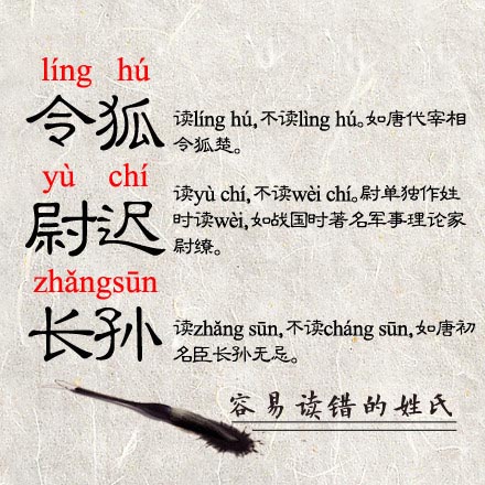 导读:中国人的姓氏源远流长、数量众多,有的读音和平常读法不一样。那、哈、曲、令狐…你确定都读对了吗?来源:人民日报
