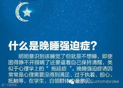 湖北无纸化报关晚睡强迫症你有吗? ①白天忙得焦头烂额,没时间做自己的事;②公交车、办公桌、课桌前,随时能睡着;③回到家刷微博、看视频、打游戏停不下来;④夜晚做任何事都“灵感爆发”;⑤终于决定睡觉,可一躺下就刷朋友圈;⑥纠结“今晚一定早点睡”和“这么早睡会不会太可惜”。