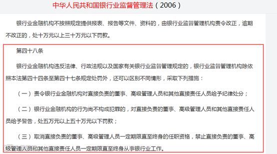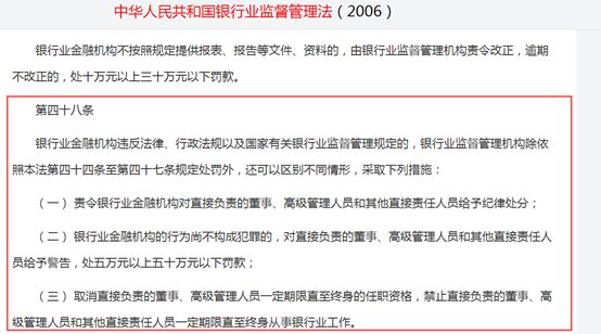 根据《中华人民共和国银行业监督管理法》第四十八条: