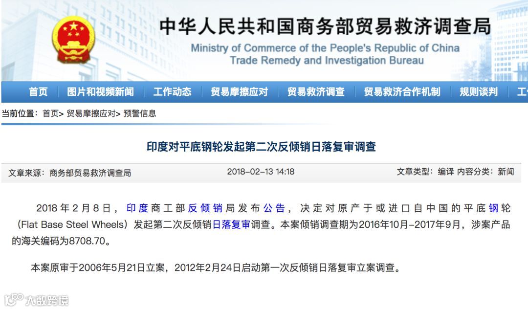 根据中国商务部网站近日连续披露的信息,1月22日、1月23日、1月24日、2月7日、2月8日,印度主管部门商工部分别宣布对来自中国的二甲基甲酰胺、对间亚苯基二甲基-4-磺酸、亚麻纱、铜版纸、平底钢轮等发起反倾销调查,产品范围涉及化工、纺织、造纸、钢铁等行业。在中国春节来临之际,印度以如此密度对中国产品实施贸易救济调查,并不多见。据初步统计2018年前两个月,印度对华发起的反倾销调查已多达8起。