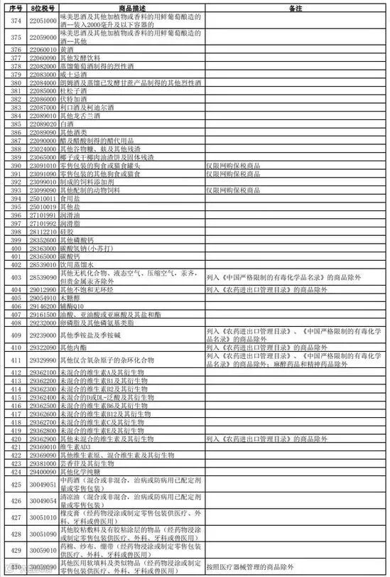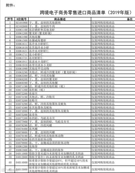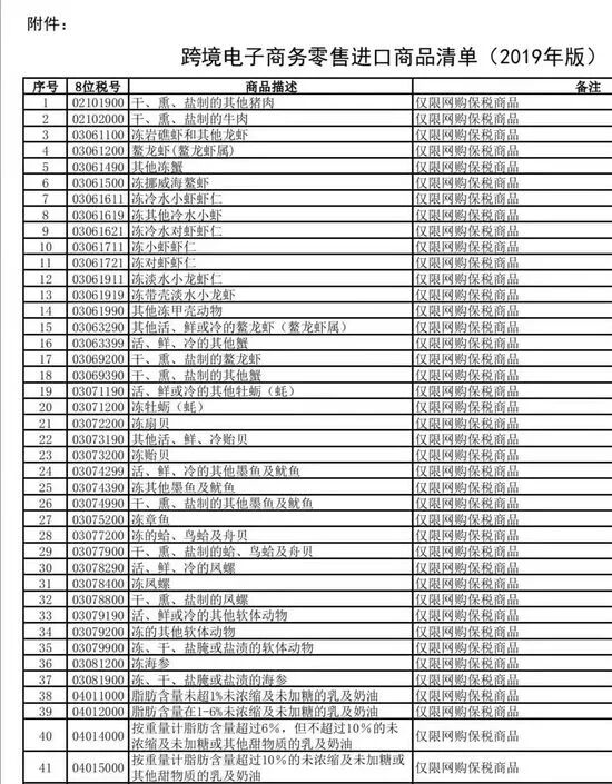 据统计,2019年版跨境电商零售进口商品清单新增92个税目商品,以下为商品清单的部分截图: