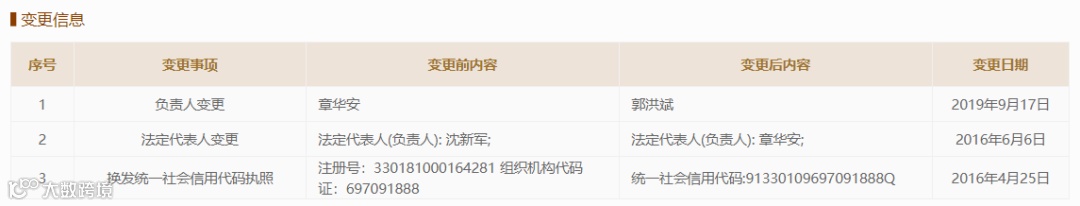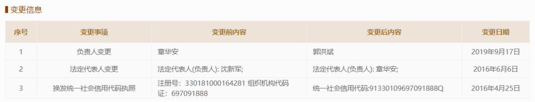天眼查数据显示,2016年6月,民泰银行萧山支行已发生法定代表人变更,由沈新军变更为章华安。国家企业公示系统显示,2019年9月17日,该行法定代表人由章华安变更为郭洪斌。