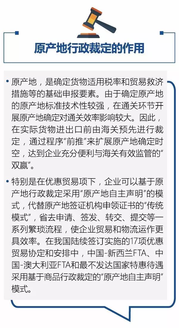 该裁定是我国实施海关行政裁定制度以来首票原产地行政裁定,也是继归类行政裁定实施后,又一项行政裁定制度落地。