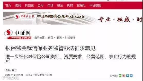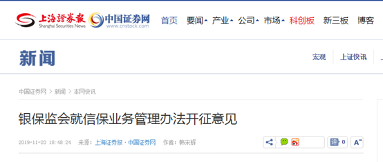 另据中国证券报独家获悉,为进一步加强信用保险和保证保险业务(以下简称“信保业务”)监管,规范经营行为,防范化解风险,中国银保监会财险部近日向各银保监局、各财产保险公司就《信用保险和保证保险业务监管办法(征求意见稿)》(以下简称《办法》)征求意见。