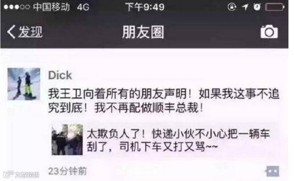 日前,顺丰快递小哥因刮到小轿车,被司机多次掌掴,引起社会强烈关注。这条疯传的新闻因为顺丰总裁的一句话又点燃了!