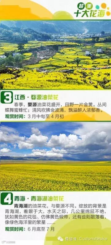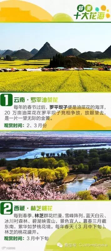 湖北无纸化报关春天到了,万物复苏。这最美的时光,怎可辜负?来一场说走就走的旅行,一起去赏花吧!十大花海+6个赏樱地↓↓从春到夏,从北京到云南和西藏,无论是油菜花、桃花、杏花、金莲花,还是樱花,总有一个地方,是你梦中的“花乡”。规划起来!