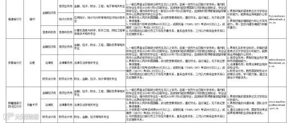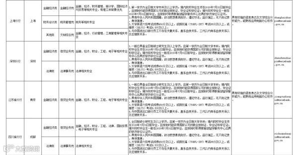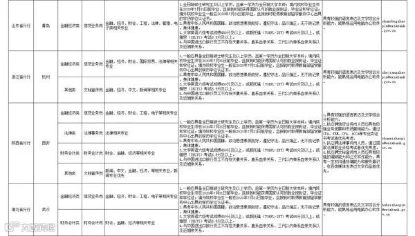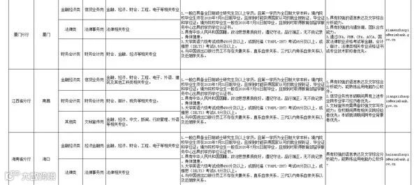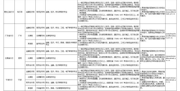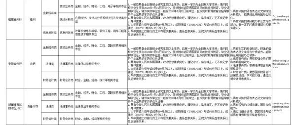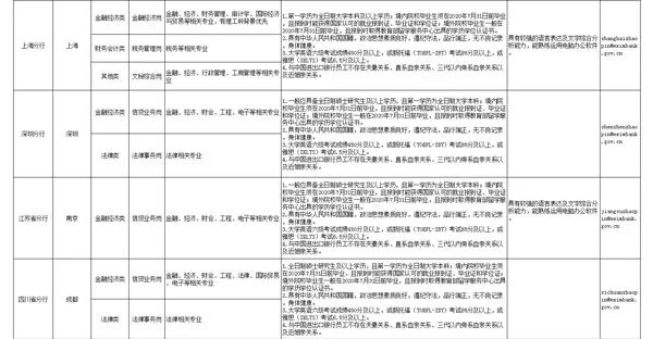 招聘专业:主要包括金融经济类、财务会计类、信息科技类、法律类、工程类、数理统计类、语言类、综合类等专业大类。