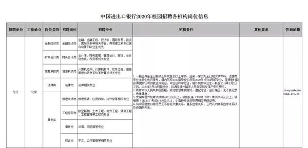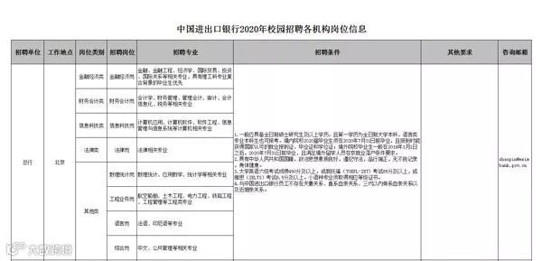 中国进出口银行2020年校园招聘现正式启动,总行、总行境内直派工作机构及境内分行诚邀境内外院校优秀应届毕业生加入!