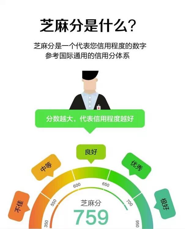 这一看似简单的分数,背后是芝麻信用对海量信息数据的综合处理和评估,主要包含了用户信用历史、行为偏好、履约能力、身份特质、人脉关系五个维度。